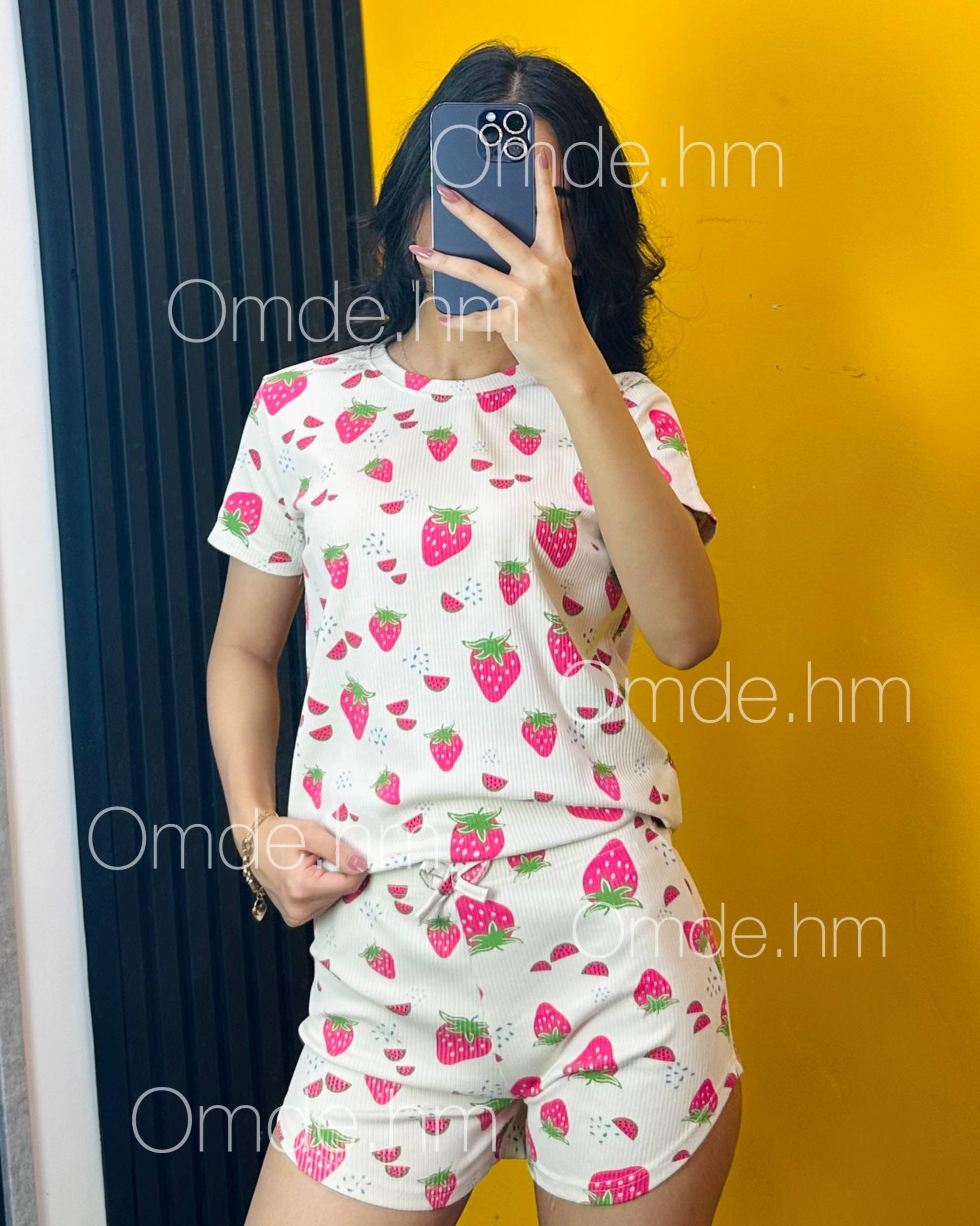 ست تیشرت شلوارک برمودا طرح توت فرنگی سایزبندی و رنگبندی متنوع