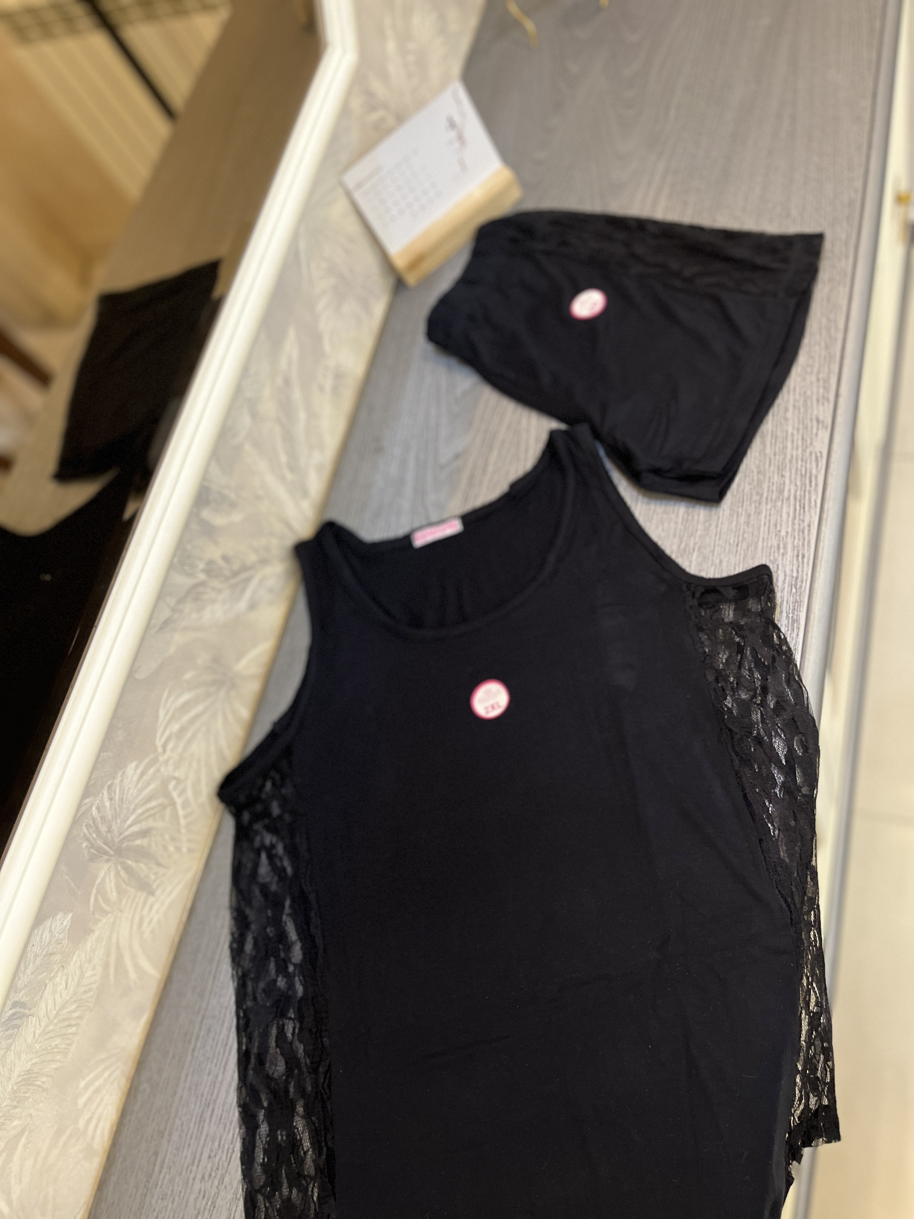 ست لباس راحتی زنانه مشکی گیپوری (تاپ و شلوارک)
