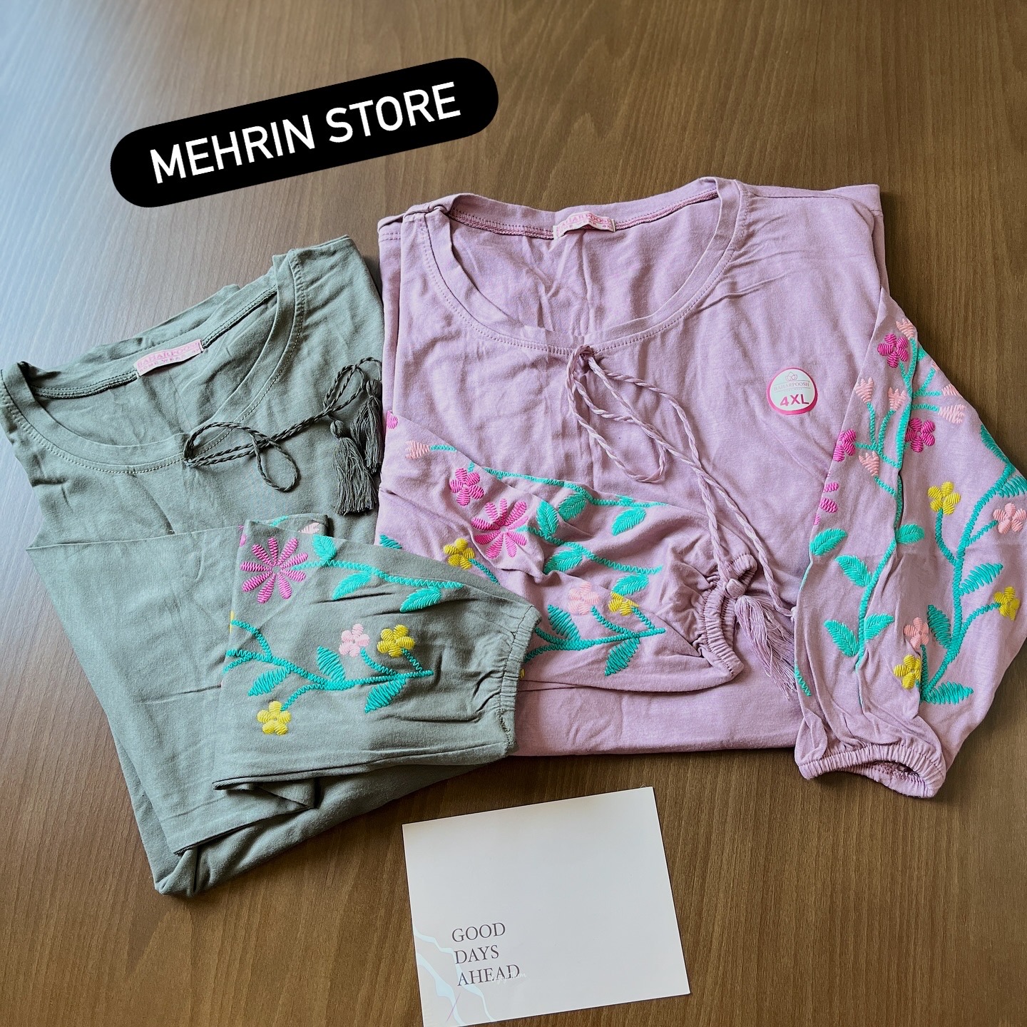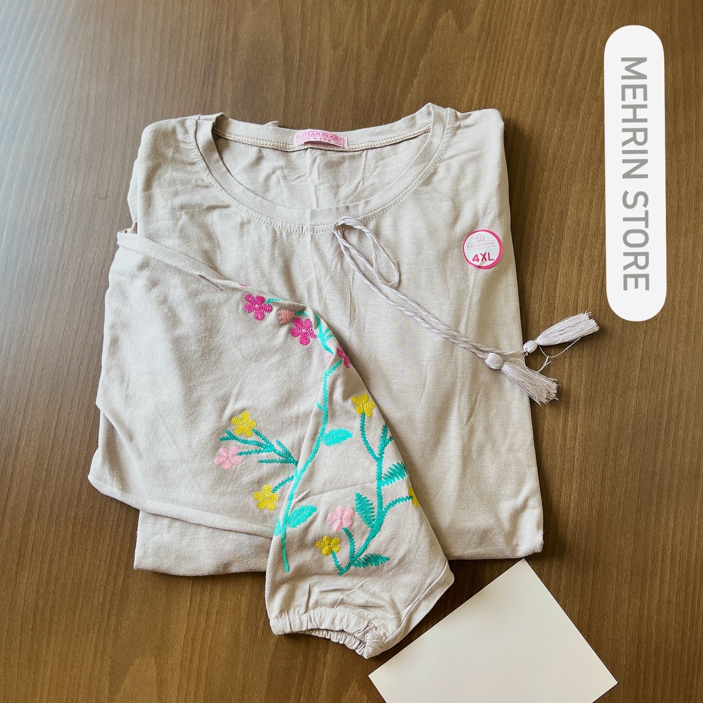 تونیک آستین گلدار سایز بزرگ جنس لاکرا 4xl/3xl