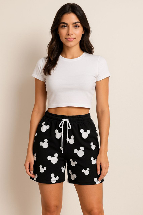 شلوارک زنانه طرح های مختلف، انتخابی راحت و جذاب برای روزهای گرم سال. این شلوارک از پارچه نرم و سبک تهیه شده تا نهایت راحتی را در خانه یا استایلهای روزمره برایتان فراهم کند. کمر کشی و بند قابل تنظیم آن، باعث میشود کاملاً فیت و دلخواهتان باشد. طرح کارتنی روی زمینه مشکی، جلوهای شاد و دخترانه به استایلتان میدهد.