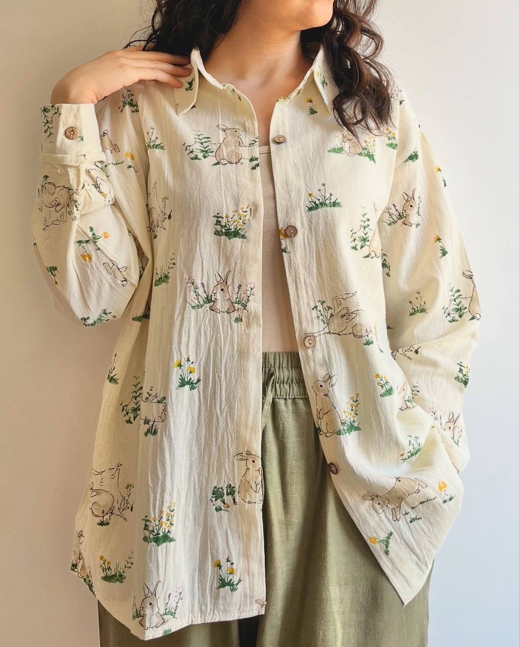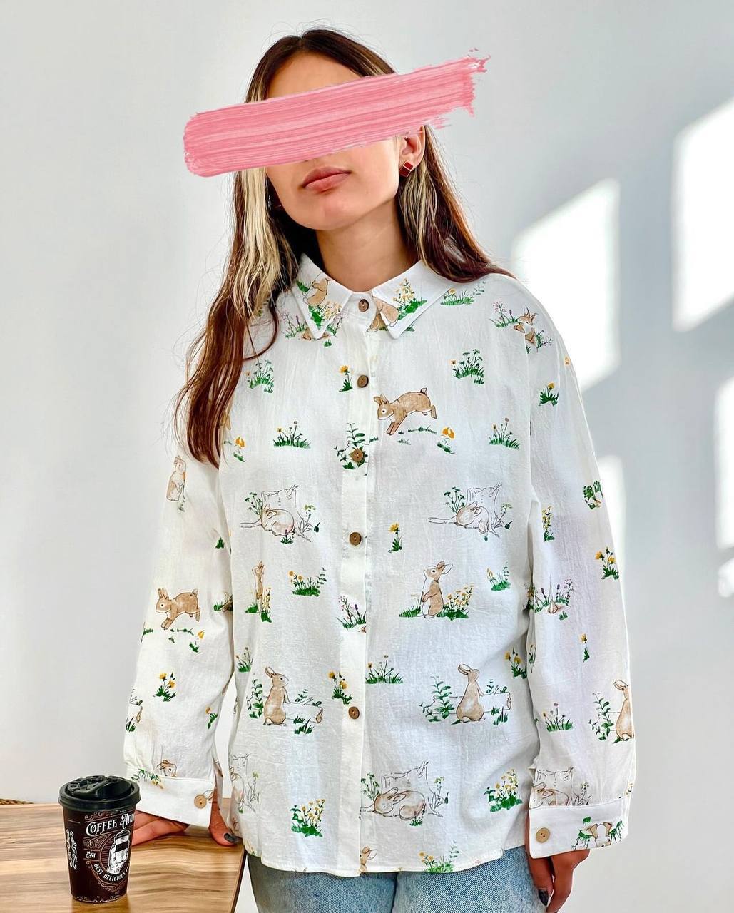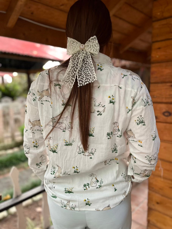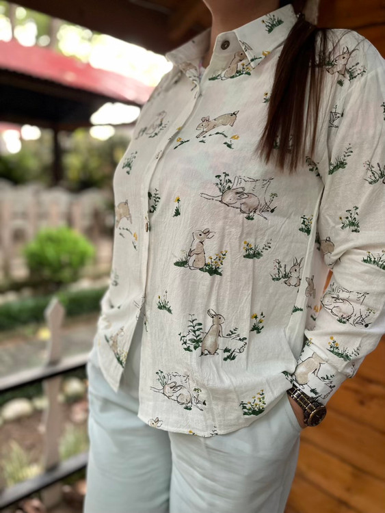 شومیز خرگوشی زنانه با طراحی خاص و چاپ خرگوشهای بامزه، انتخابی ایدهآل برای روزهای بهاری و تابستانی است. این شومیز از پارچه خنک و سبک دوخته شده و حس راحتی بینظیری را در طول روز به شما هدیه میدهد.