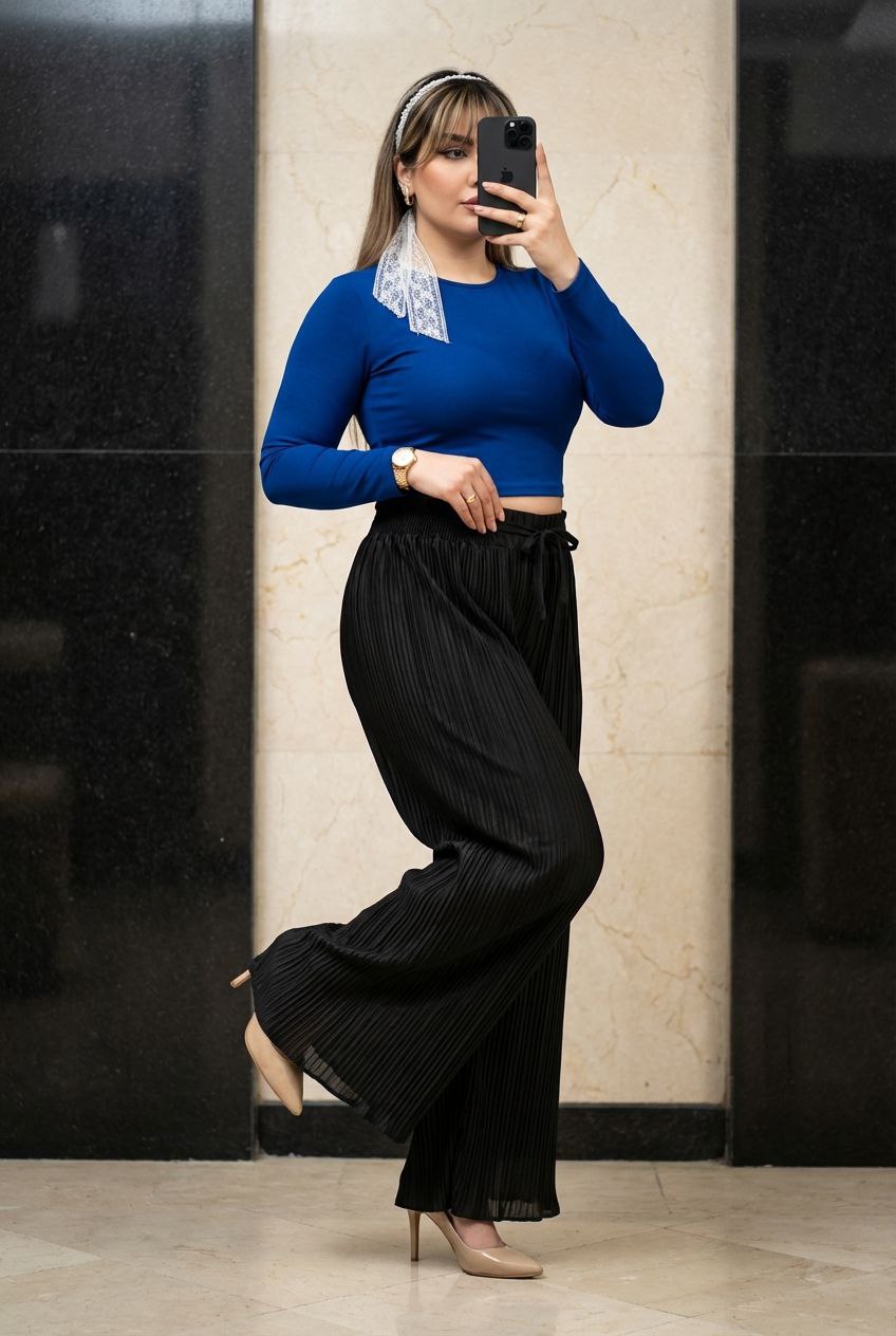 شلوار ریون پلیسه کمر کش فری سایز تا ۵۰