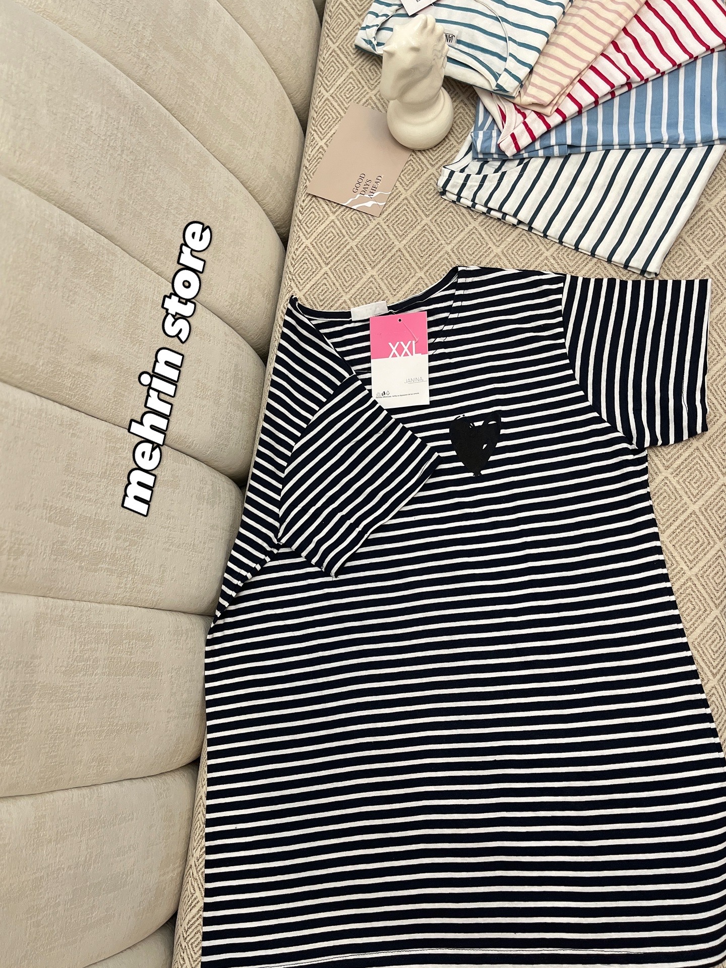 تیشرت راه راه لانگ باقد ۷۵ نخ پنبه در سایزبندی