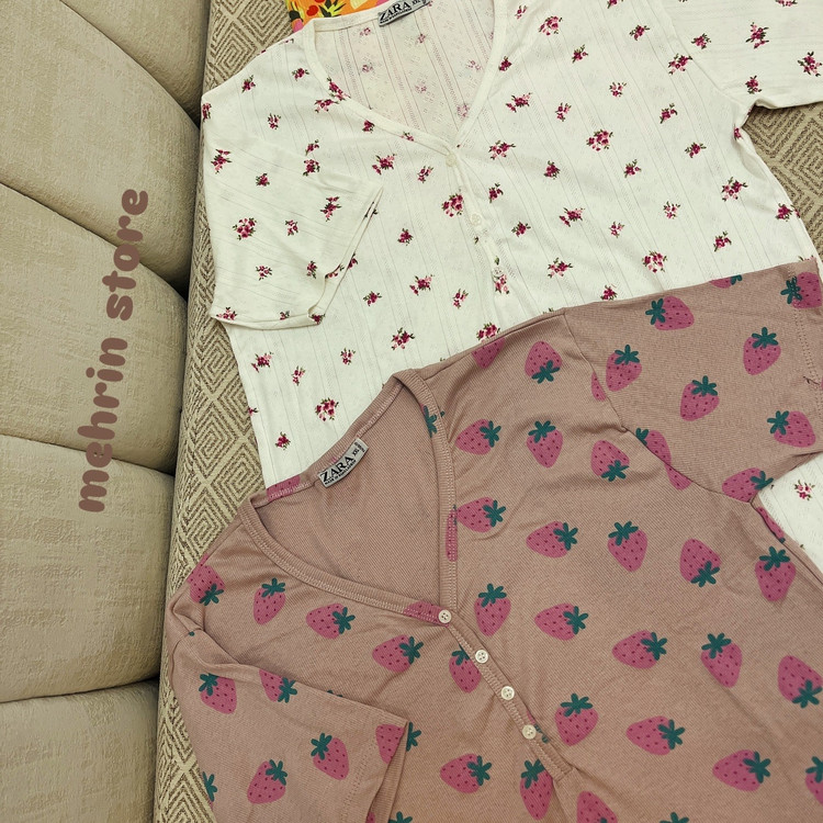 تیشرت هاس طرح دار یقه هفت کبریتی برند h&m