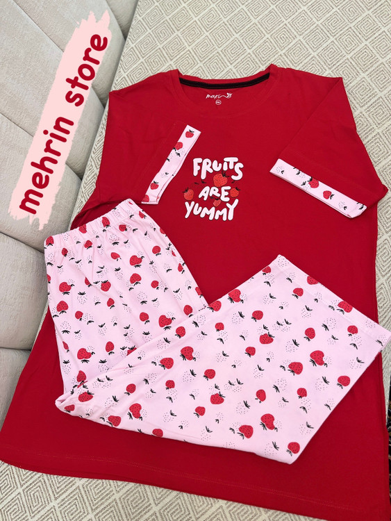 🔹 ویژگیهای ست راحتی زنانه طرح توتفرنگی مهرین: