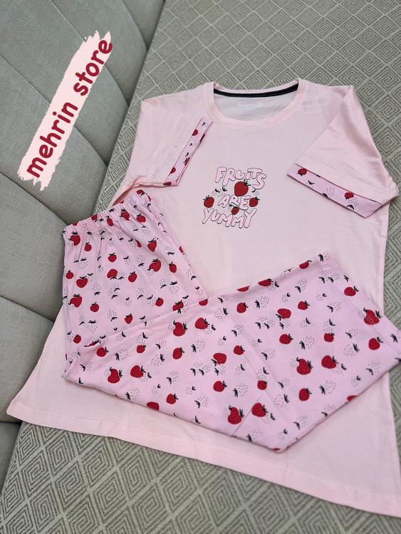 اگر به دنبال یک ست راحتی زنانه شیک و راحت هستید، ست توتفرنگی فروشگاه مهرین انتخابی ایدهآل است. این ست شامل بلوز (در دو رنگ صورتی و قرمز) و شلوارک طرحدار توتفرنگی است که طراحی فانتزی و دخترانه آن، حس تازگی و انرژی را به استایل خانگی شما میبخشد.