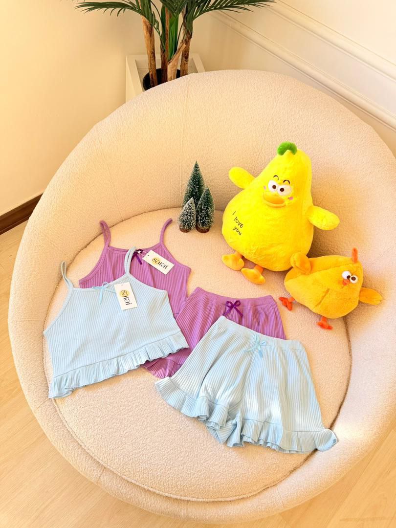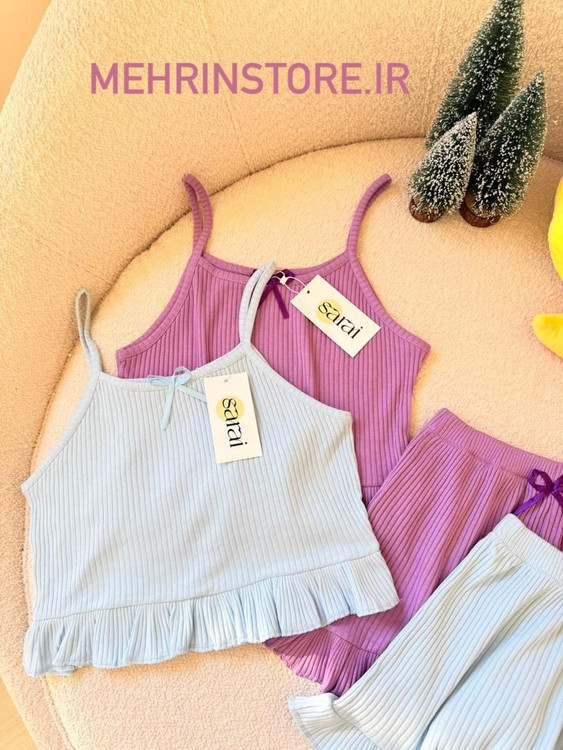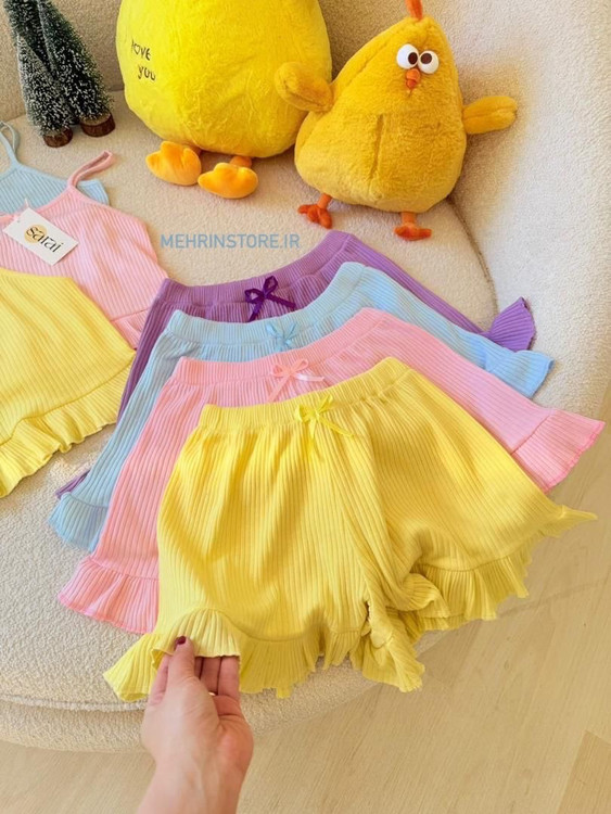 ست تاپ و شلوارک با جنس نرم و لطیف و مدلر چیندار دلبر