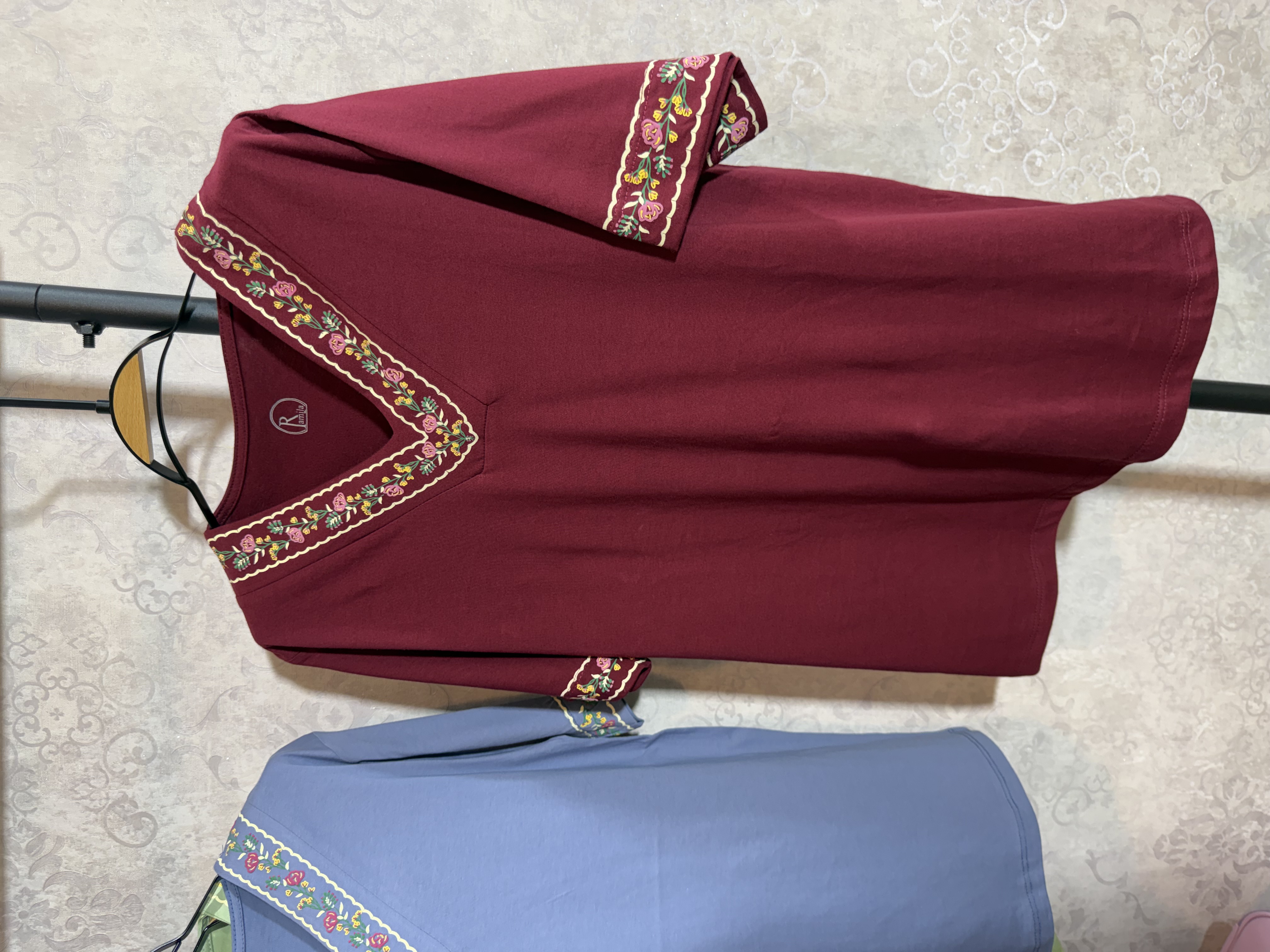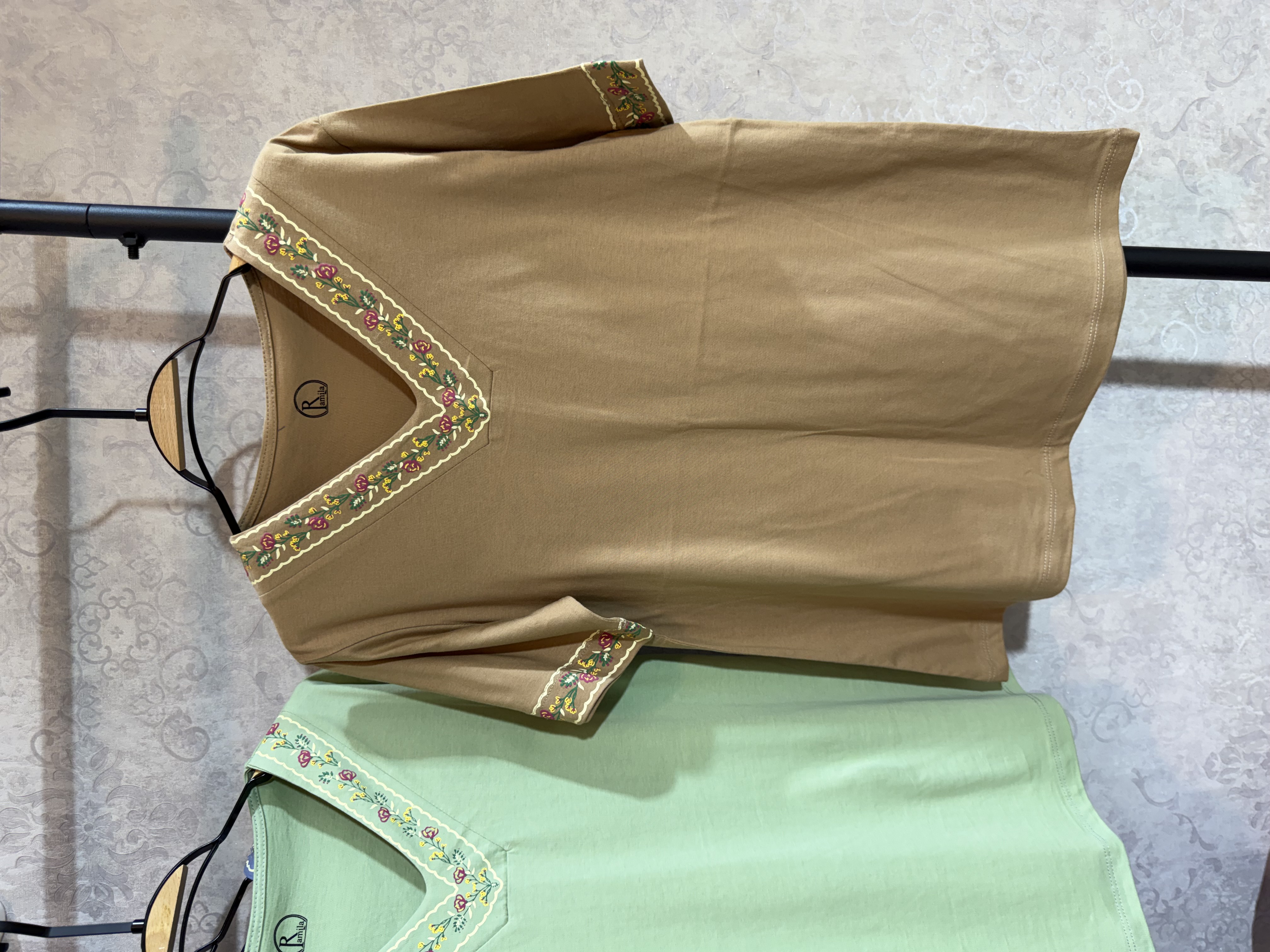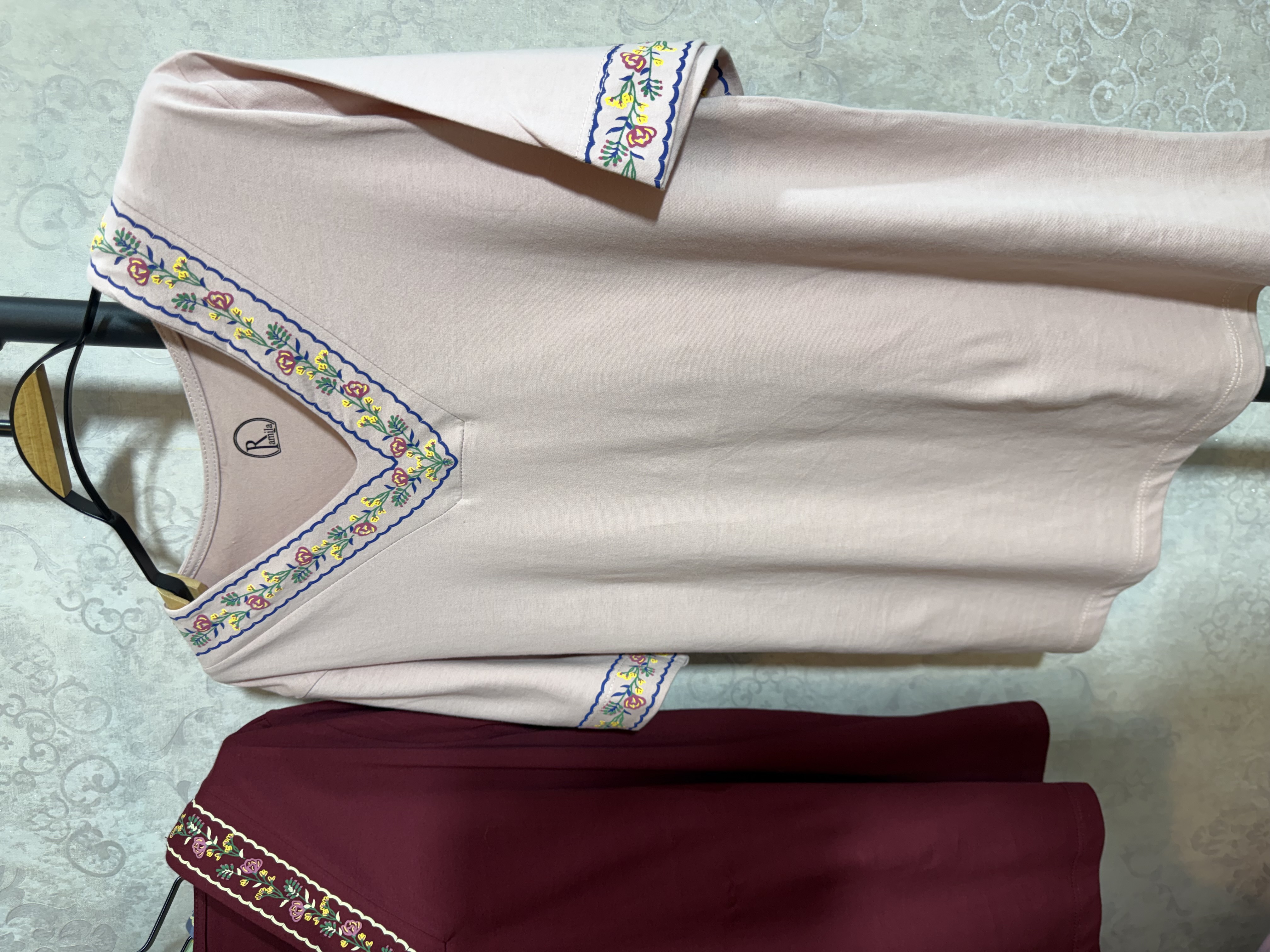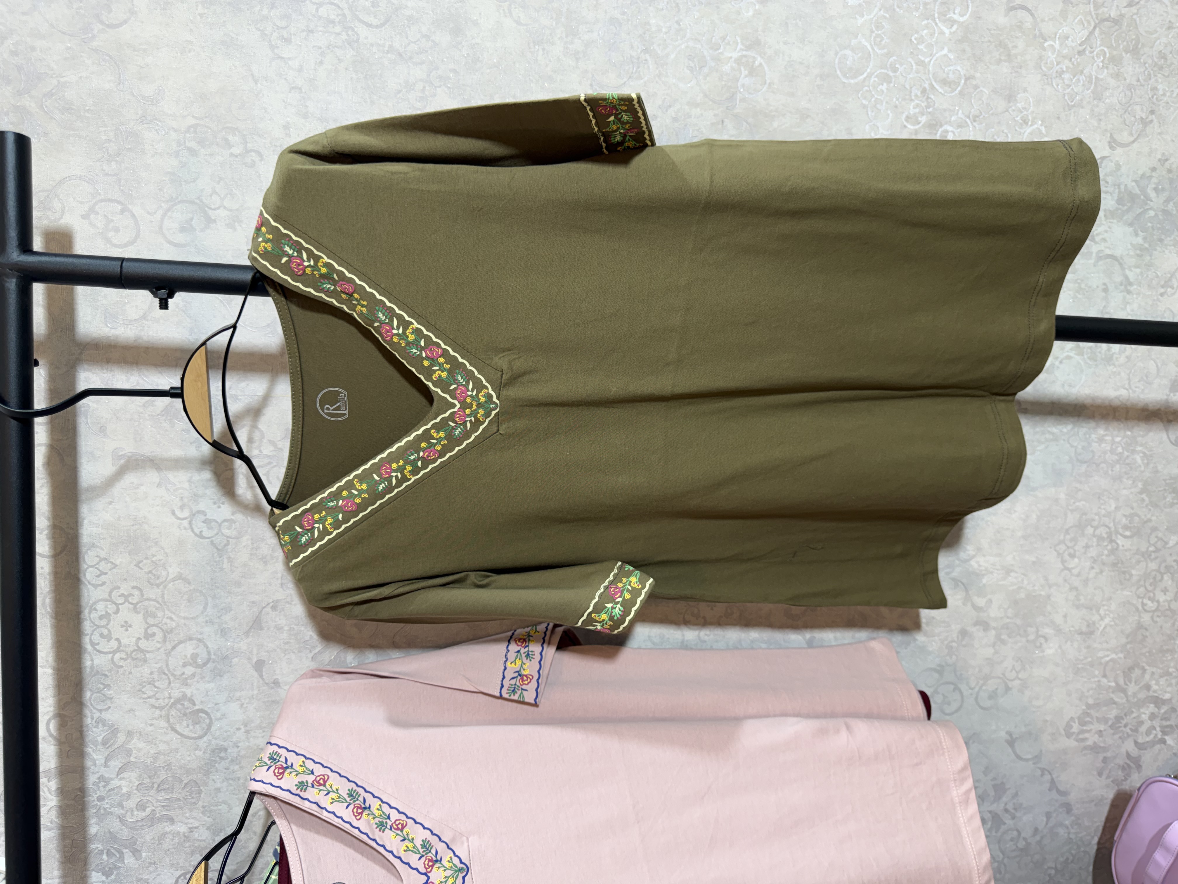 تونیک یقه هفت آستین کوتاه نواردوزی فری سایز تا ۴۸