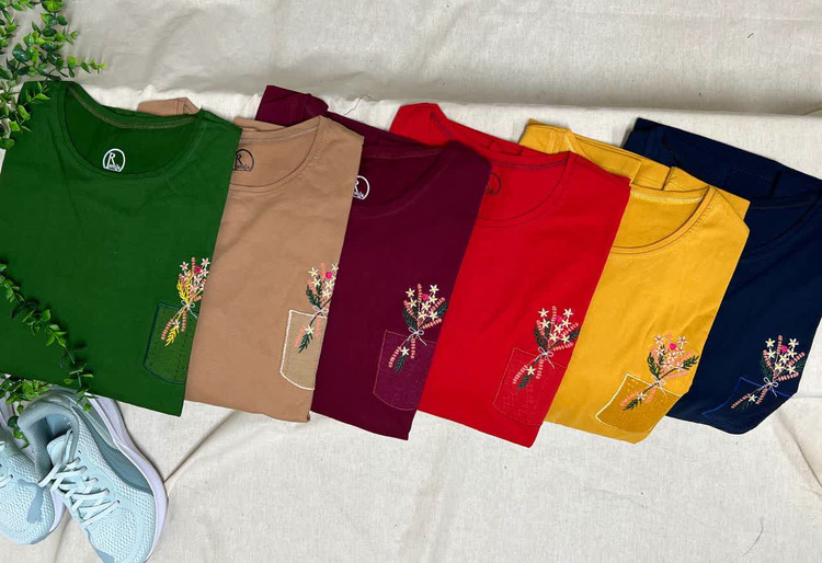 آستین مچدار و گلدوزی روی سینه