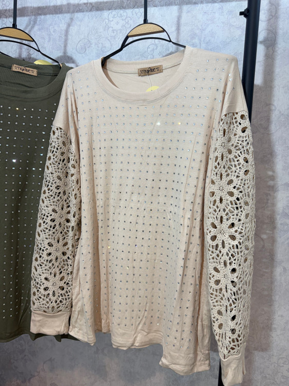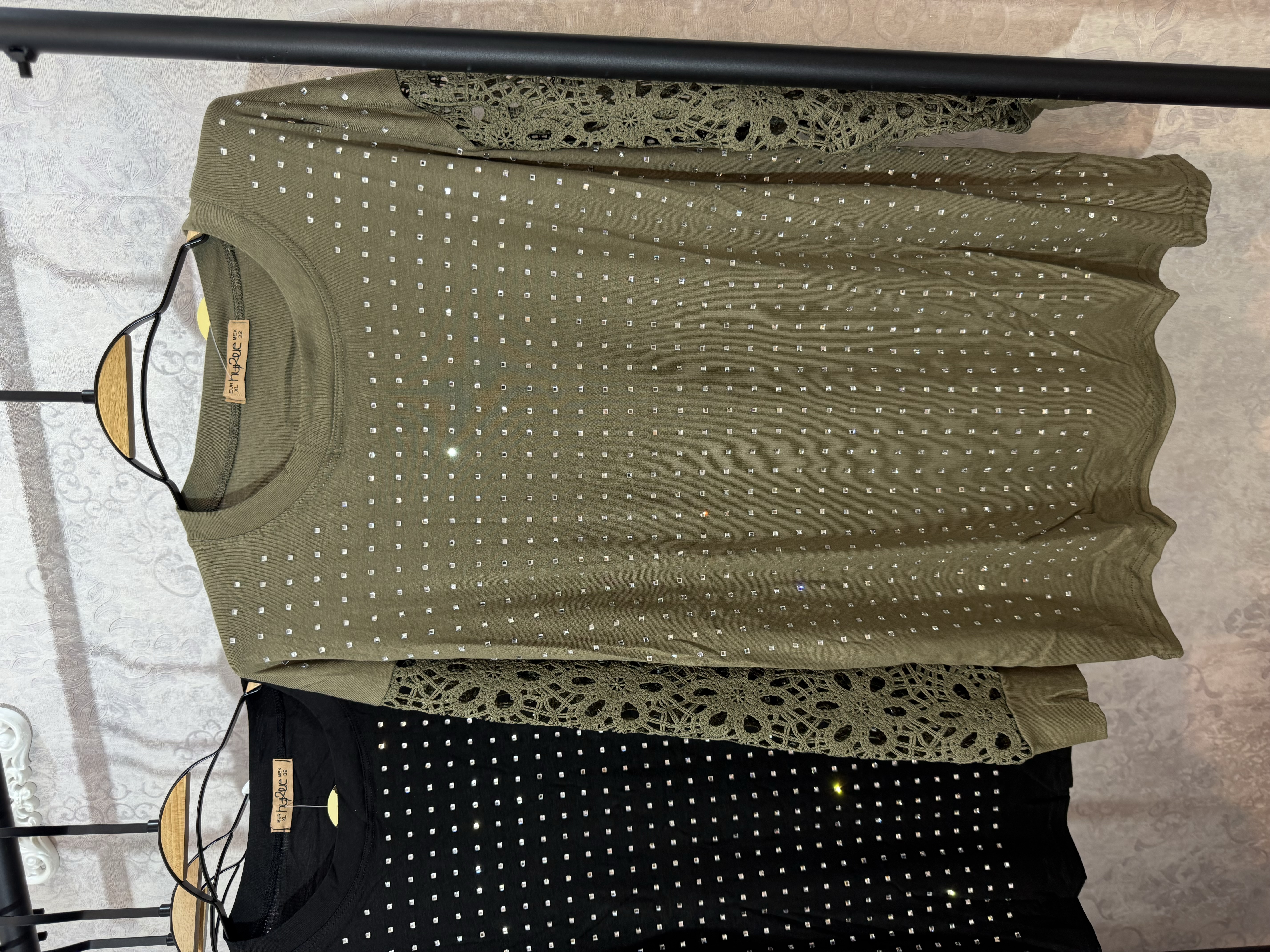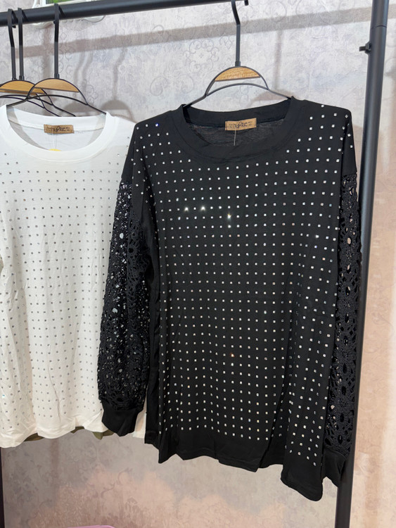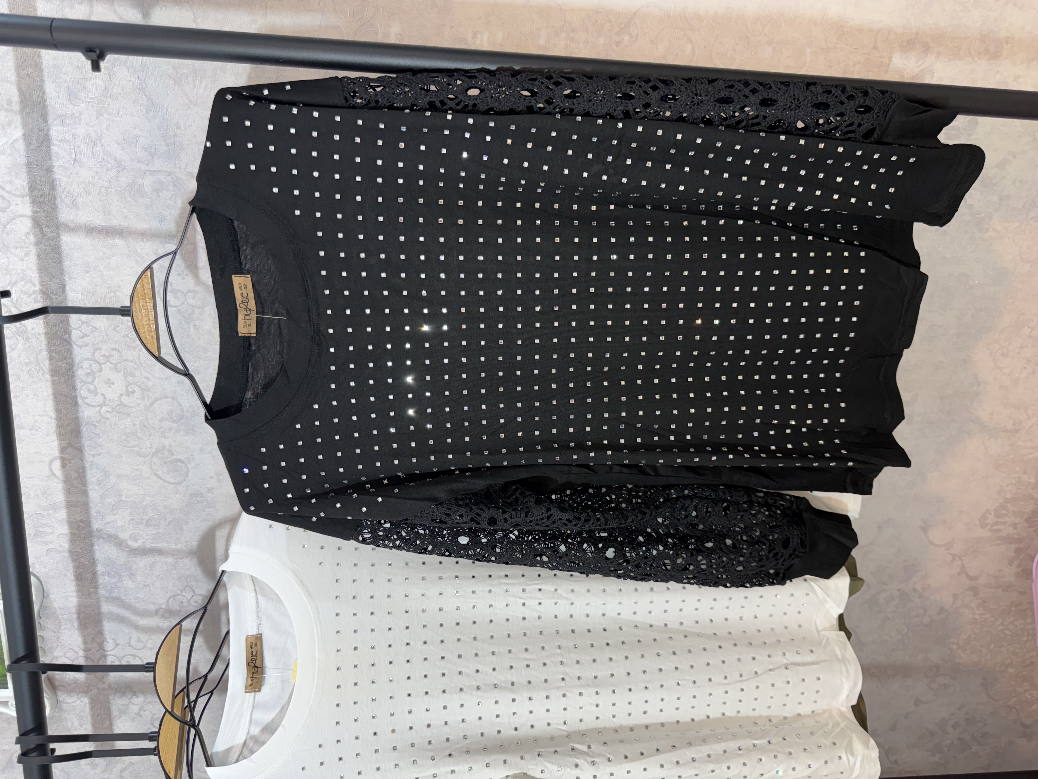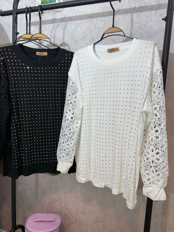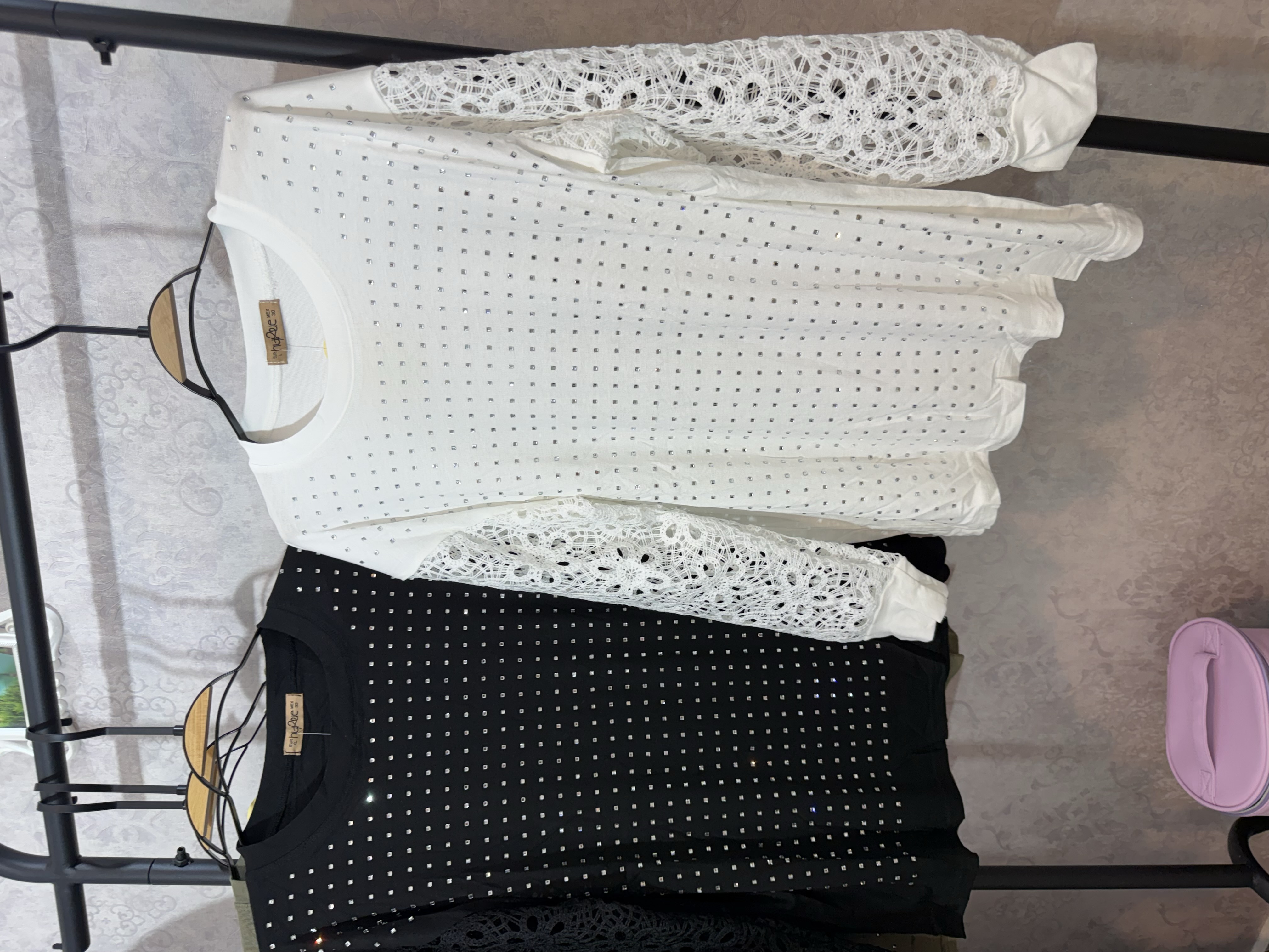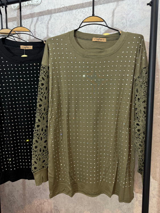 بلوز مجلسی خال خالی آستین بلند گیپور فری سایز تا ۵۰